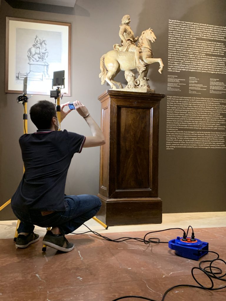 The project is part of the program for the Festival Filosofia 2020, that this year is inspired by the theme of “machines”. Through the technological “machine” of augmented reality it will be possible to discover another “machine”: the gigantic equestrian monument (more than 7 meters tall) representing Duke Francesco III, created in 1774 by the sculptor from Carrara, Giovanni Antonio Cybei for Sant’Agostino Square, and that was destroyed just over 20 years later during the revolutionary movements.